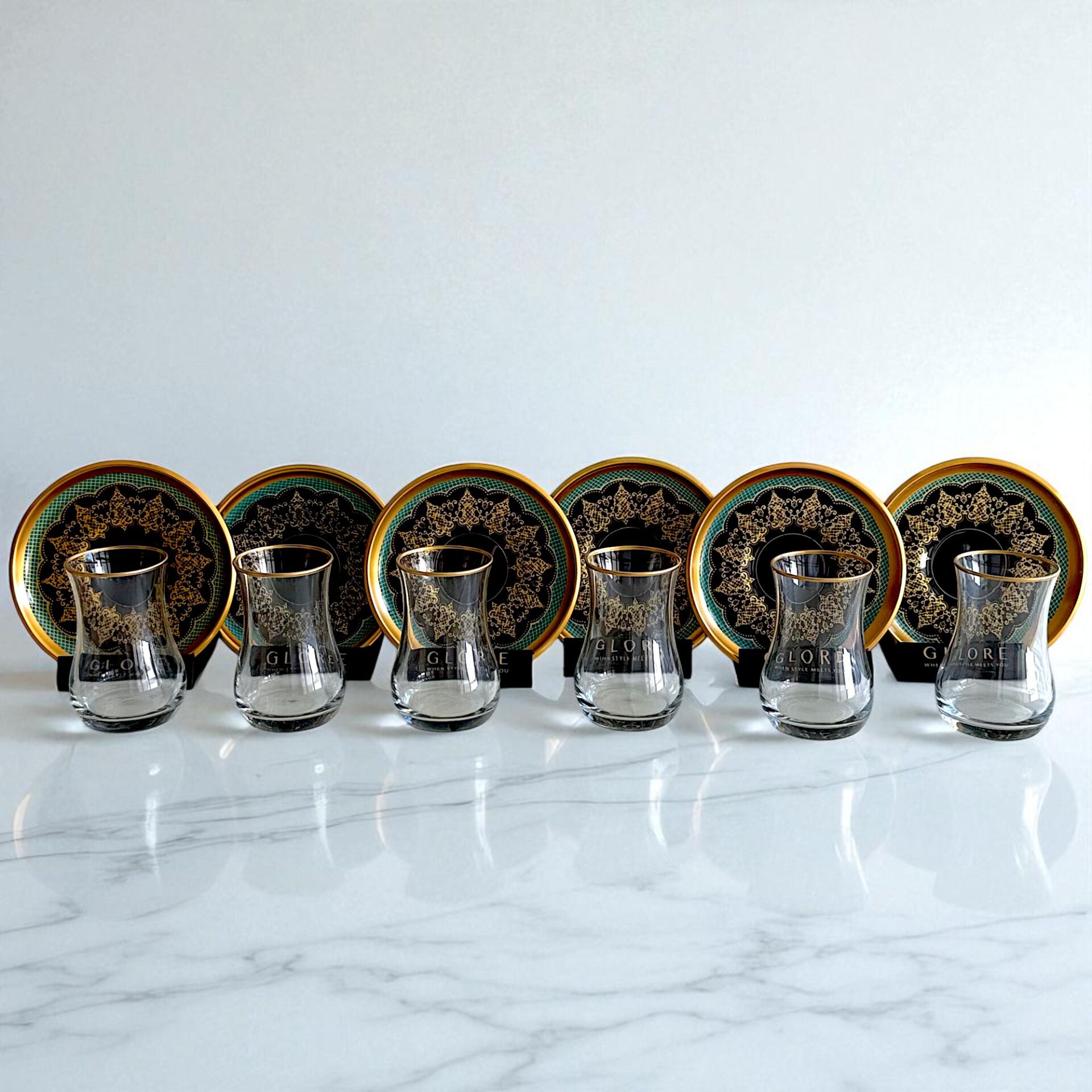 Paket İçeriği: 6 adet cam çay bardağı ve 6 adet desenli porselen tabaktan oluşur. Toplam 12 parçadır.