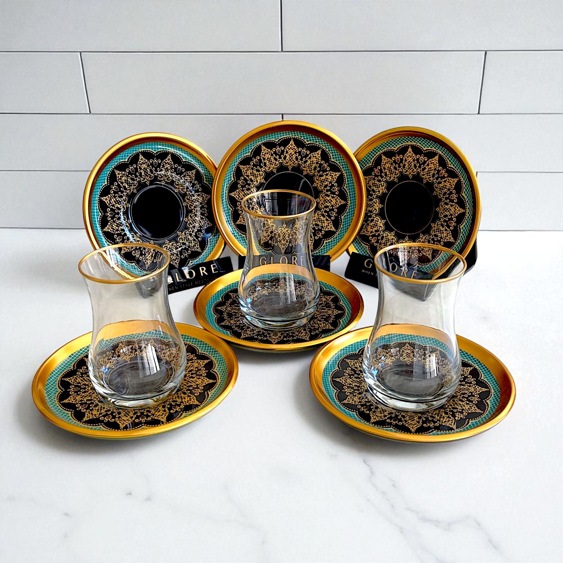 Sudedi Home Siyah ve Turkuaz Desenli 6 Kişilik Çay Bardağı Seti ile Sofralarınıza Lüks ve Egzotik Bir Hava Katın!