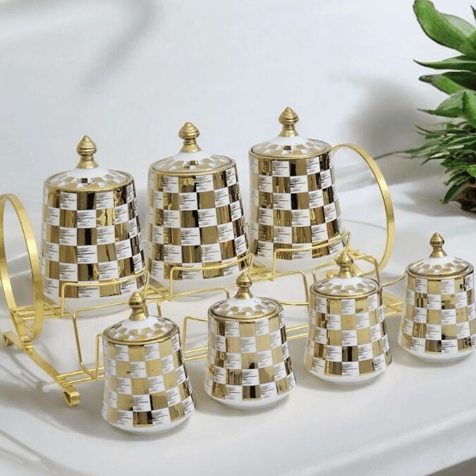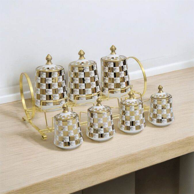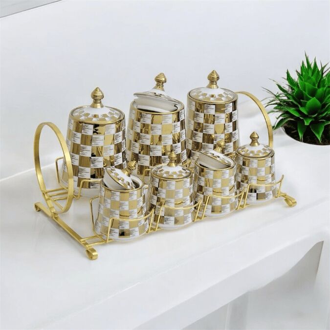 Sudedi Home Tutku Canister 7Li Porselen Standlı Baharat Kavanoz Takımı PXM2602GC-7/S