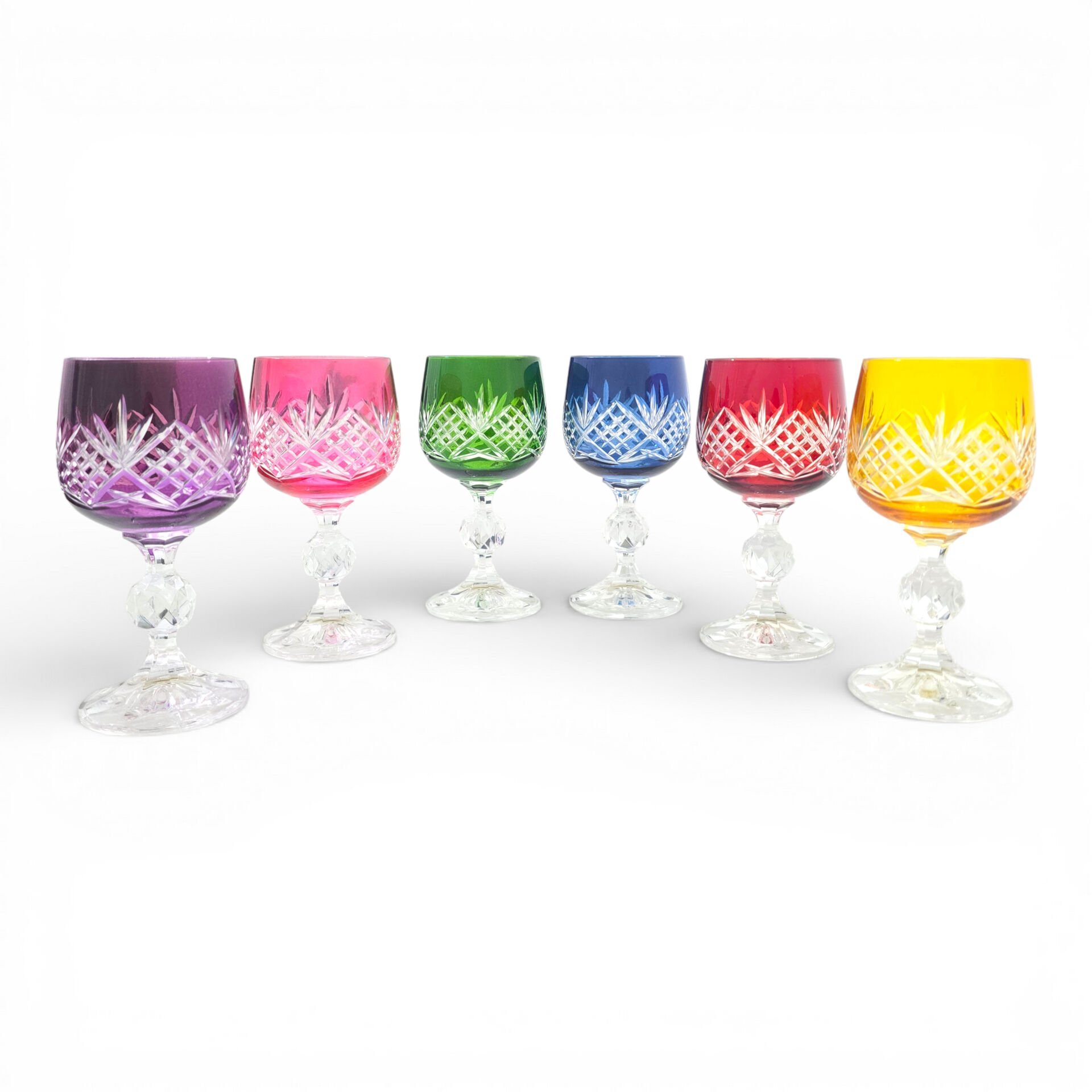 Sudedi Home Renkli Kristal Kesim Ayaklı Kadeh Seti 6’lı