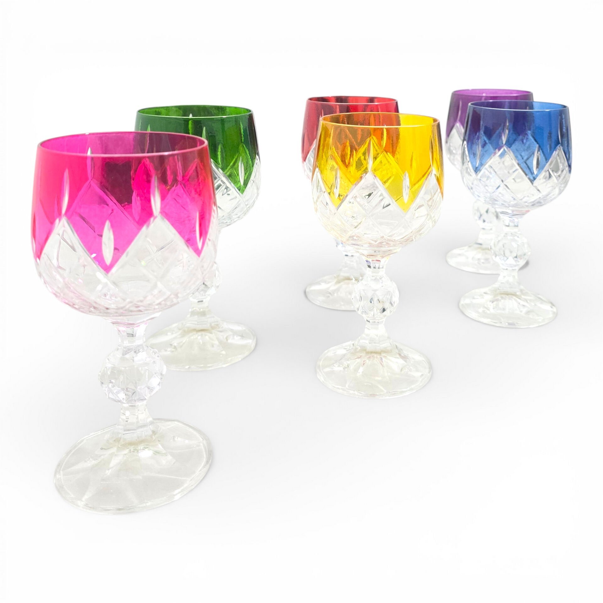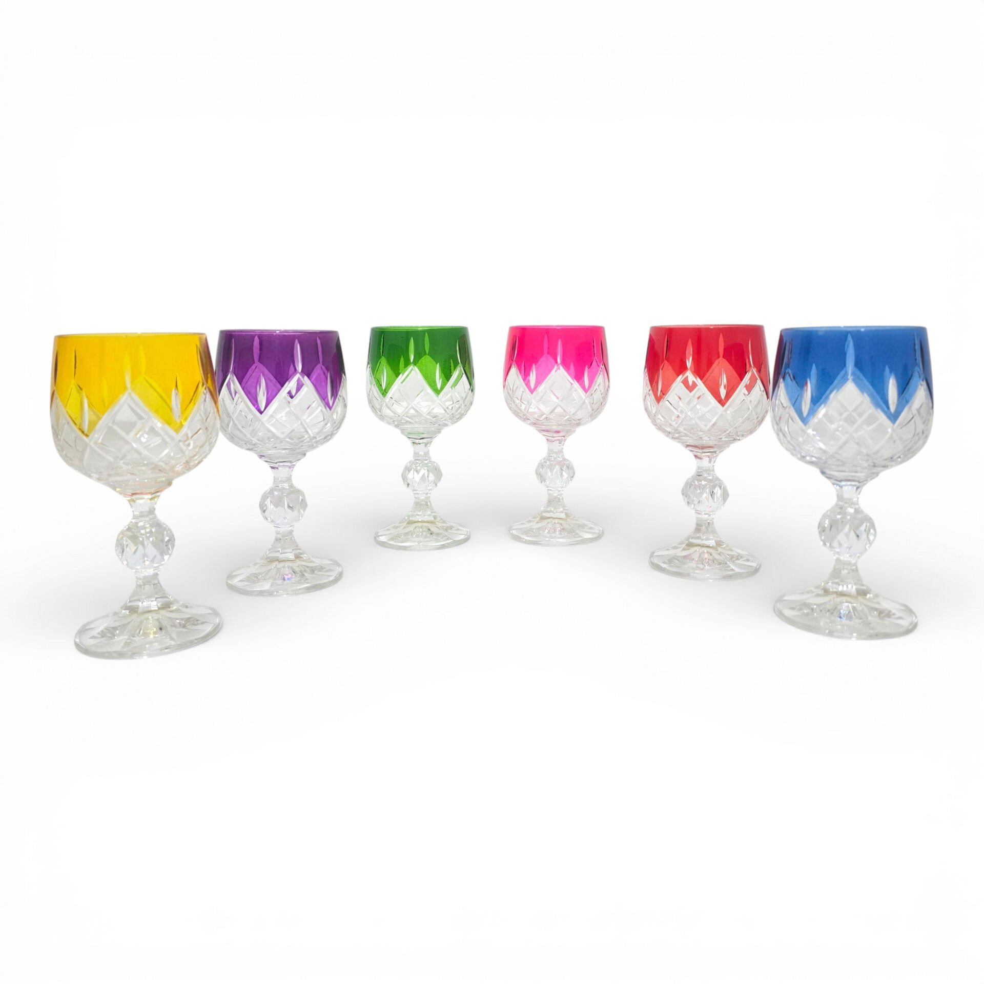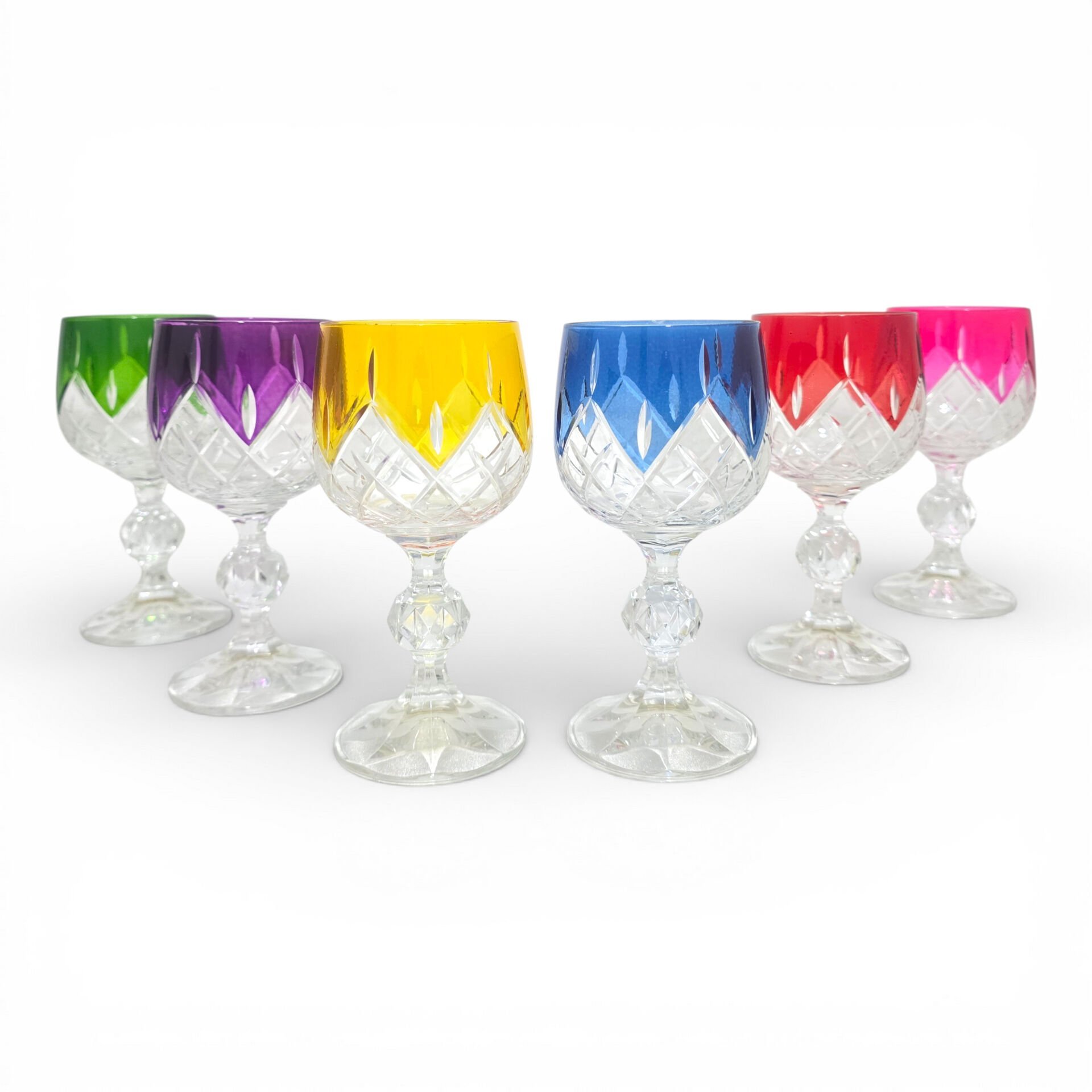 Sudedi Home Renkli Kristal Ayaklı Bardak Seti 6’lı Cam Kesim Desenli Sunum Kadehi