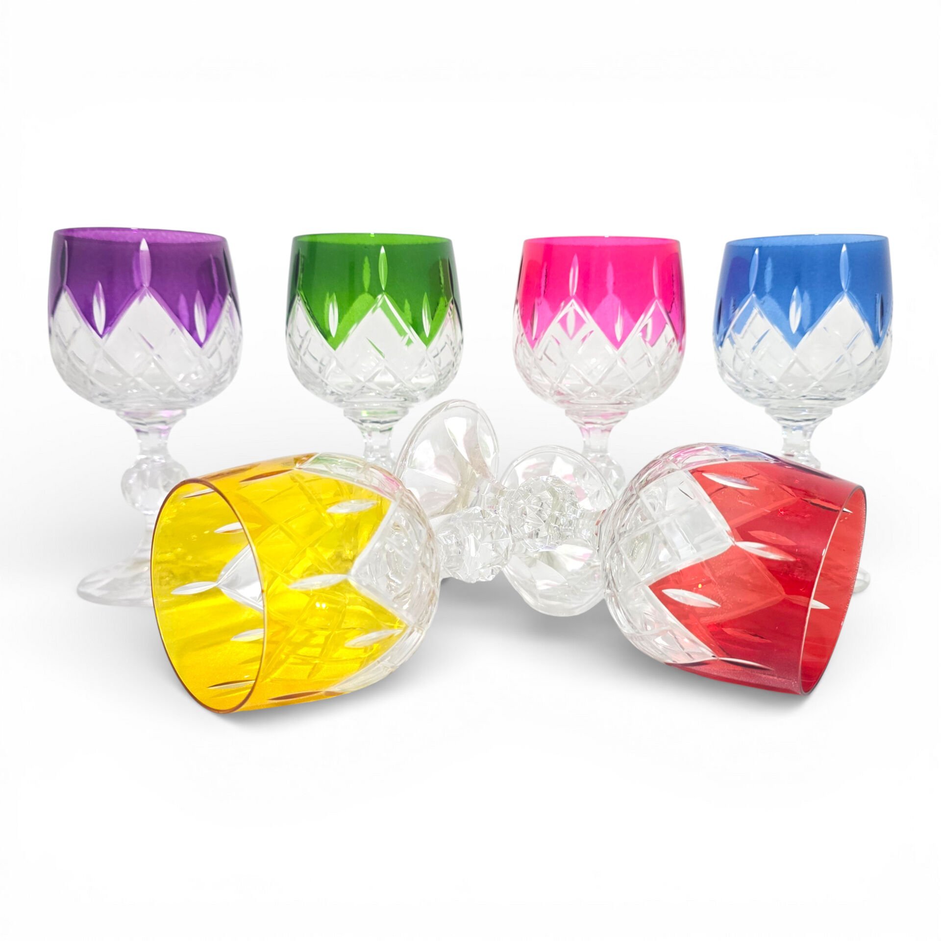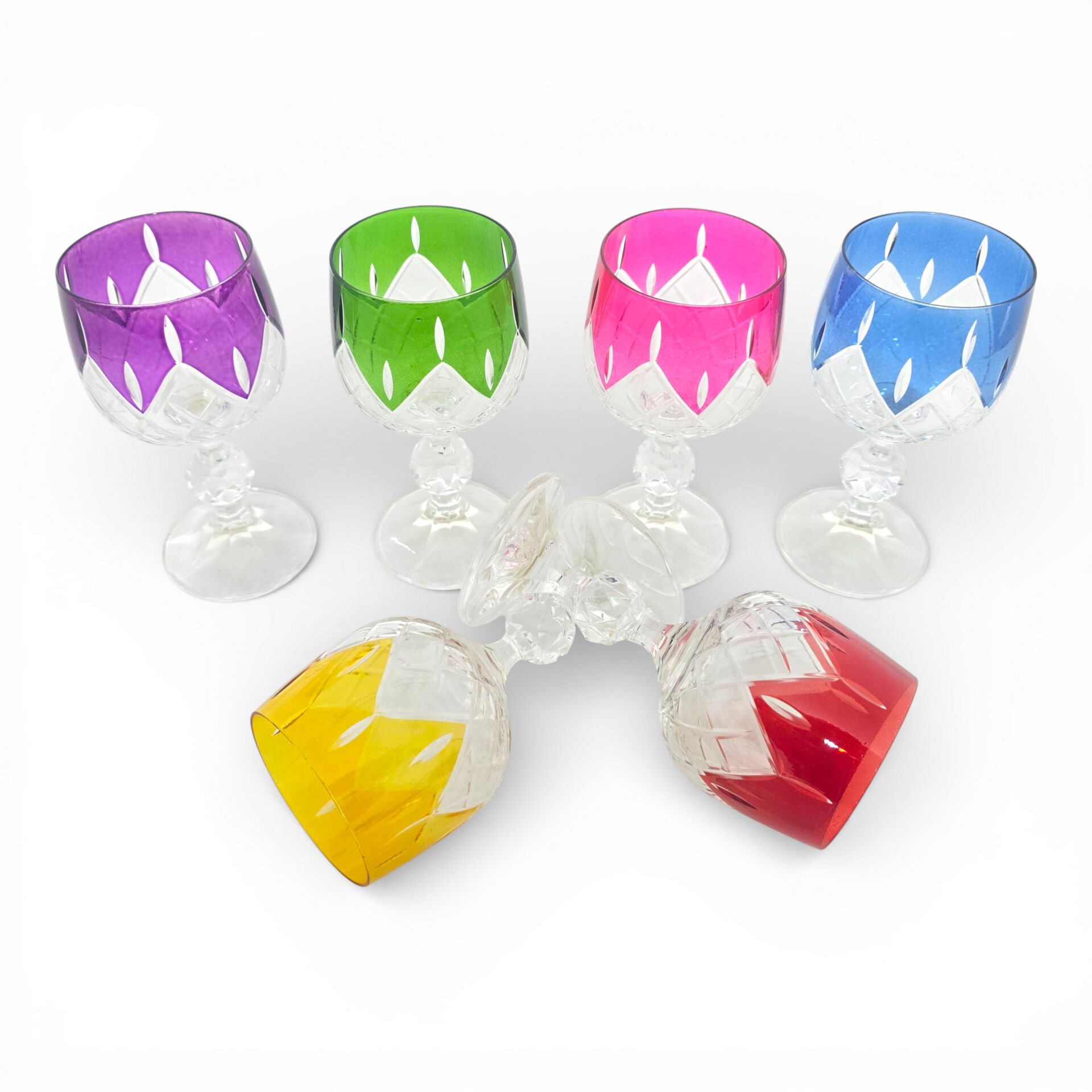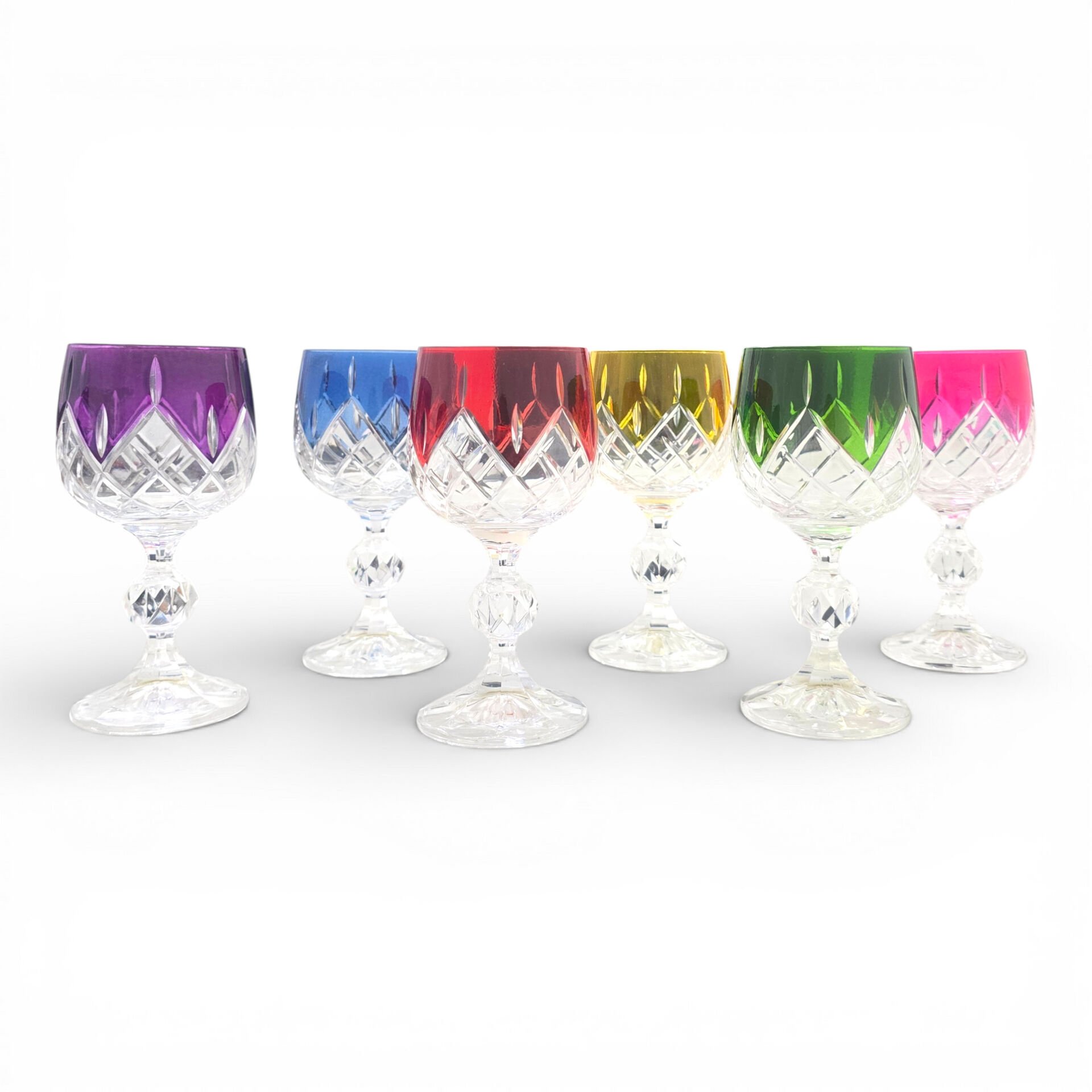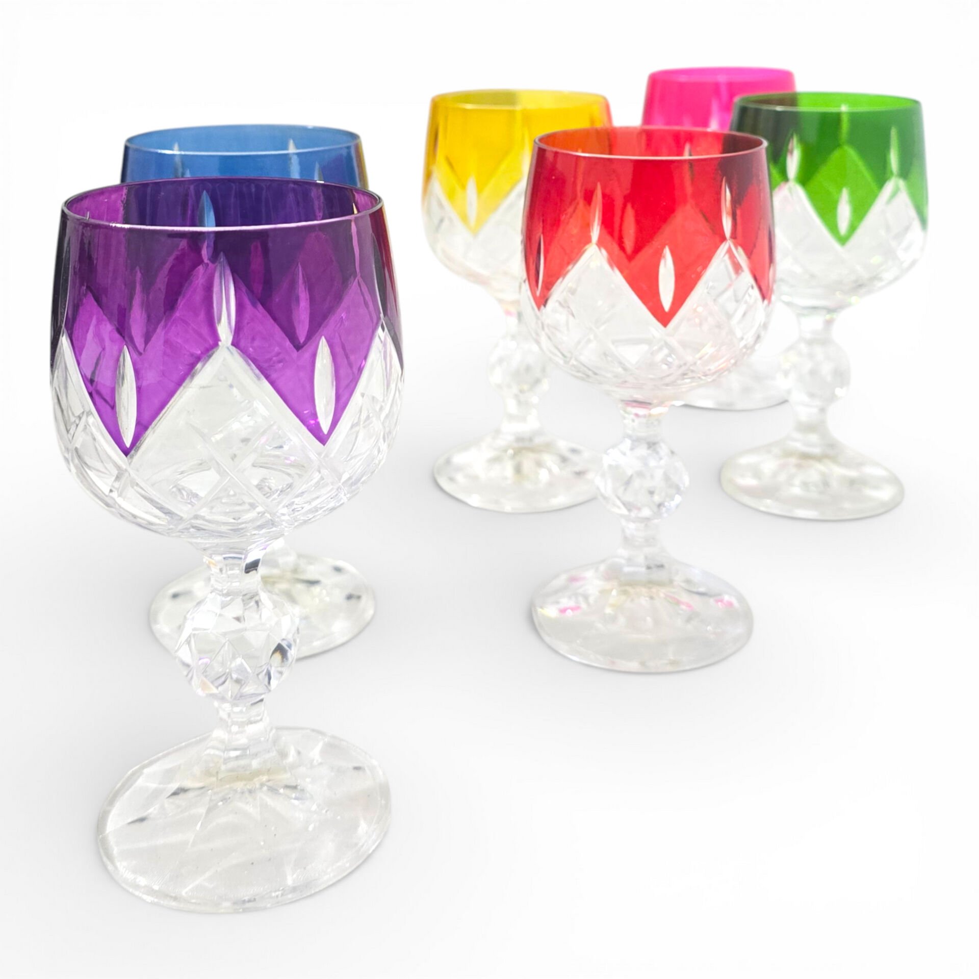 Sudedi Home Renkli Kristal Ayaklı Bardak Seti 6’lı Cam Kesim Desenli Sunum Kadehi
