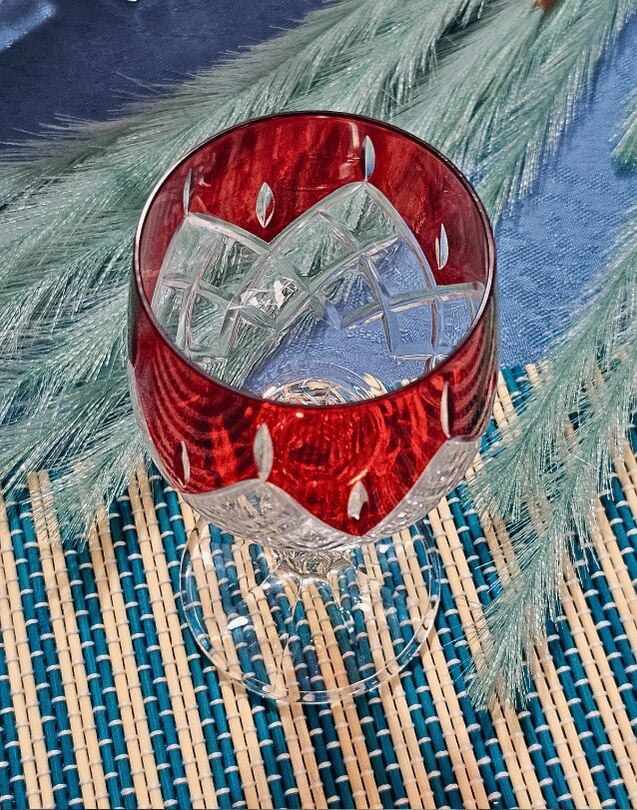 V Dekor Desen Kırmızı 1 Adet Bardak Kadeh