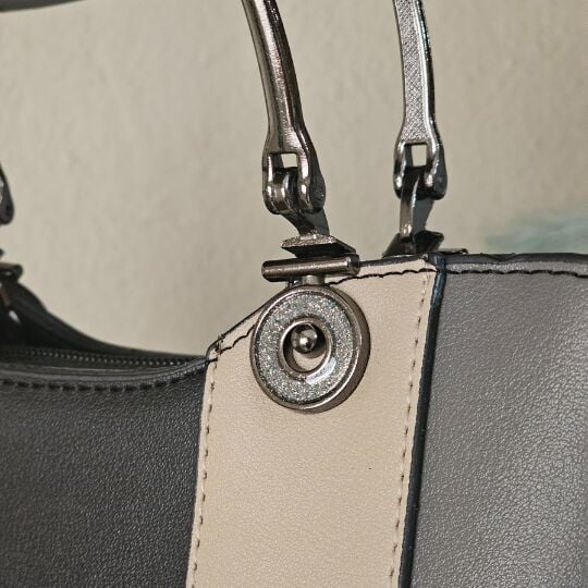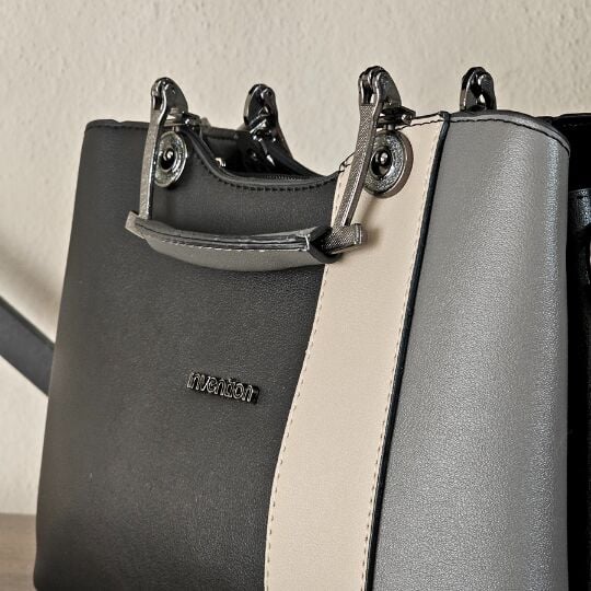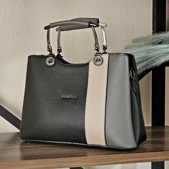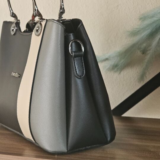 Siyah, gri ve bej renklerinin modern birleşiminden oluşan bu zarif çanta, stilinize çağdaş bir dokunuş katacak.